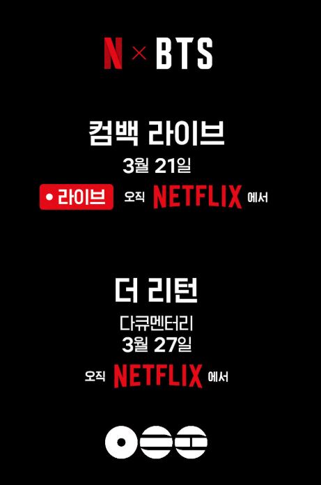 방탄소년단 컴백 다큐멘터리, 3월 27일 넷플릭스 단독 공개.